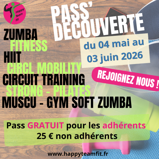 Découvrez pendant un mois nos activités à un tarif unique pour le mois (gratuit pour les adhérents - vérification par les membres du bureau). 7 activités par semaine en illimité pendant 1 mois !
